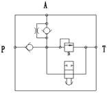 當(dāng)車廂需要舉升時(shí),操縱SDJF-L8型手動(dòng)舉升轉(zhuǎn)閥手柄桿旋轉(zhuǎn)至“舉升位置”,閥芯切斷P口至T口的油道,壓力油經(jīng)P口、單向閥、單向節(jié)流閥到A口,進(jìn)入舉升缸后車廂開始舉升;車廂完成舉升后,需要下降時(shí),將該閥的手柄桿旋轉(zhuǎn)至“下降位置”,閥芯接通P口至T口油道,舉升泵輸出的油經(jīng)P口和T口回油箱,車廂開始平穩(wěn)下降。該閥的工作原理示意圖如下: