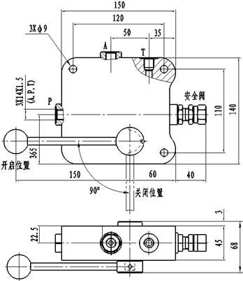 SDJF-L8型手動(dòng)舉升轉(zhuǎn)閥是我公司根據(jù)小型自卸車液壓舉升系統(tǒng)需要開發(fā)的一種手動(dòng)舉升閥。通過操縱手柄桿旋轉(zhuǎn)帶動(dòng)閥芯旋轉(zhuǎn)一定角度(90o)使壓力口P與回油口T接通或斷開,實(shí)現(xiàn)車廂的舉升或下降。該閥還配置了安全閥、單向閥、單向節(jié)流閥,對(duì)液壓舉升系統(tǒng)起到安全保護(hù)和平穩(wěn)慢降的目的。