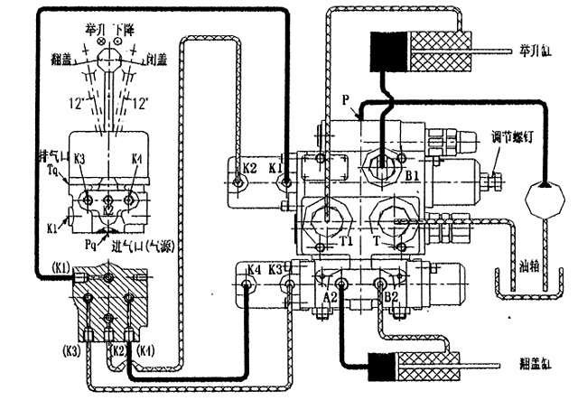 該閥先導(dǎo)控制部分以壓縮空氣為工作介質(zhì),通過氣缸動作推動閥芯開閉而轉(zhuǎn)換工作機(jī)能,即實現(xiàn)車廂的舉升—中!陆档裙δ。